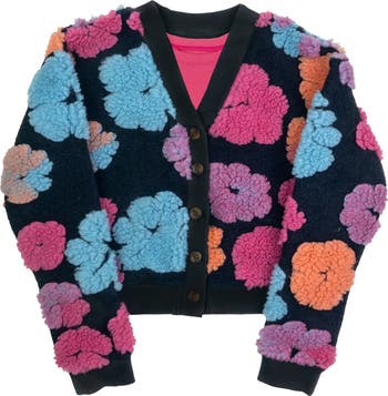 A long-sleeve cotton T-shirt is paired with an adorable fuzzy-flowered cardigan in this colorful set that will keep your little one feeling cozy and colorful.