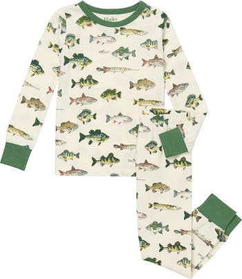 Schools of fish swim in calming colors around soft, stretchy pajamas that hug your child in organic-cotton comfort from lazy daytimes to peaceful dreamland.