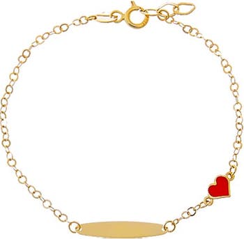 Keep it classy yet current with the Kids Red Enamel Heart ID Bracelet by Adina Eden, a sleek 14K Bracelet for your collection. This gold bracelet for women enhances any look with radiant charm, styled in 14K Gold. For days that start early and end late, this piece adapts to your pace and your style—one detail, unlimited versatility. Stack this 14k gold bracelet with pieces from our 14K Hand Chains collection for a finished outfit that feels totally you. You'll style it once—and keep coming back without second thought.