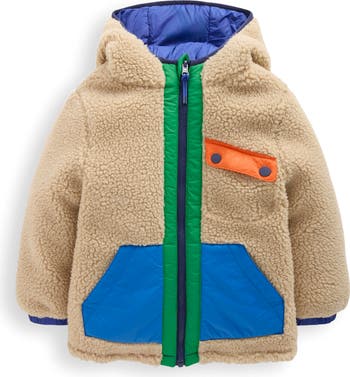 Your kiddo can keep the cool days at bay thanks to this reversible hooded jacket that has channel quilting on one side and reverses to plush faux-shearling for versatile pairing.