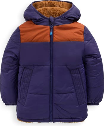 Your kiddo can keep the cool days at bay thanks to this reversible hooded jacket that has channel quilting on one side and reverses to plush fleece for versatile pairing.