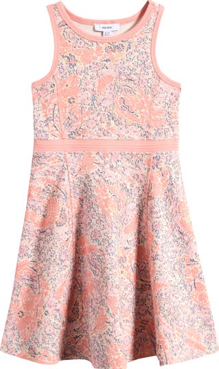 Sweeten their vibe in this finely ribbed fit-and-flare frock cut from soft stretch cotton and covered in delightful swirling blooms.