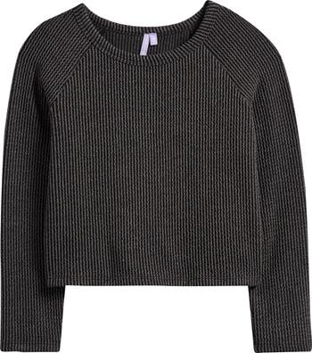 Squiggly ribbing textures this everyday top that's an easy grab-and-go from school to play.