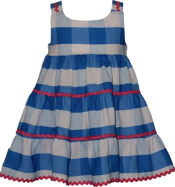 Outfit your babe in this fit-and-flare frock covered in cheerful checks and sweet rickrack trim.