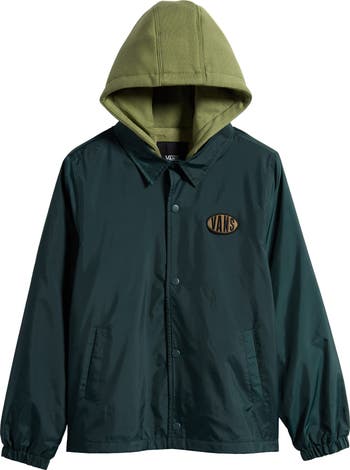 Your kid can keep comfortable on the sidelines or out on the field in this traditional coach jacket topped with a cozy fleece hood.