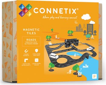 Kids can play with engineering principles as they build road-inspired designs with this set of magnetic tiles that's fun for the whole family. The black-shaded tiles are perfect for building raceways, airports, skateparks, cities and more. This imagination-sparking set lets kids explore STEAM concepts such as gravity, motion, shape and light.