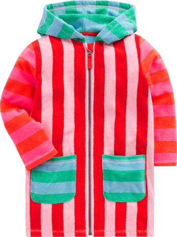 Let your kiddo relax poolside in this multicolor striped hoodie-style cover-up dress cut from a cozy cotton blend with roomy front patch pockets and a streamlined fit that layers easily between swims.
