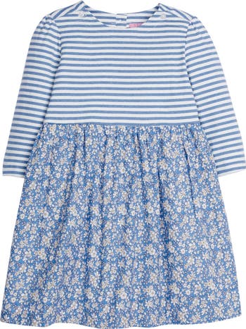 Stripes and florals together - oh my! Your little fashionista will L-O-V-E the ease of our bestselling Rosie Dress. With its gorgeous blue floral skirt and super comfy striped top, it's the perfect style for school or play