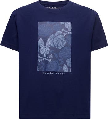 The iconic bunny-skull logo is camouflaged amongst the floral graphic of this kid-sized T-shirt made from fresh, breathable pima cotton.