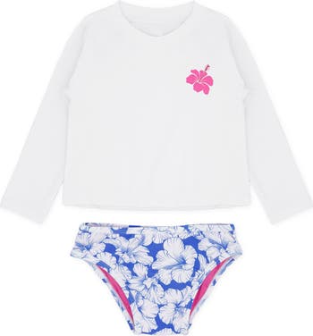 They'll love to splash and play in this ruffled two-piece rashguard swimsuit that's breathable and quick-drying to keep them feeling their best on land and in the water.