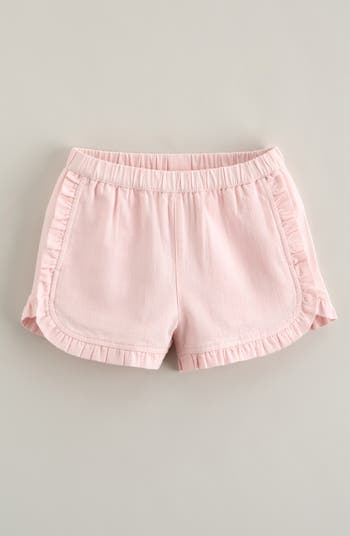 Frilly ruffle trim sweetens comfy elastic-waist shorts cut from soft cotton.