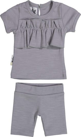 A front ruffle adds a little frill to the top of this matching set that will have your little one ready for the day in one step.
