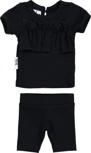 Manière Kids' Ruffle Top & Bike Shorts Set, Main, color, Black