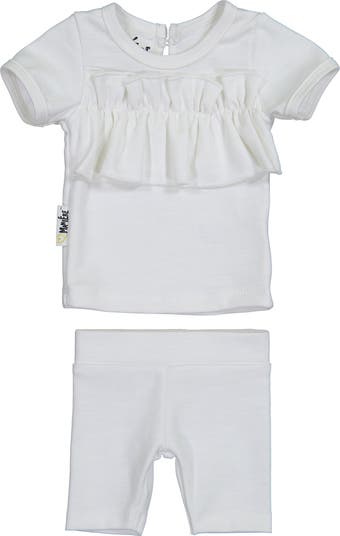 A ruffle at the chest adds a little frill to this cotton-rich set that will keep your tot comfy from playtime to snuggle time.