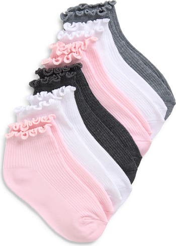Give your kid fun style with this pack of 6 ankle socks finished with playfully ruffled trim.
