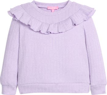 Our Jody Top is the perfect cozy, cute style your #bisbygirl won't be able to get enough of. We love the ruffle around the shoulders and sweatshirt-inspired fit! Try it with our Lavender Vine Floral Leggings for a stylish play look.