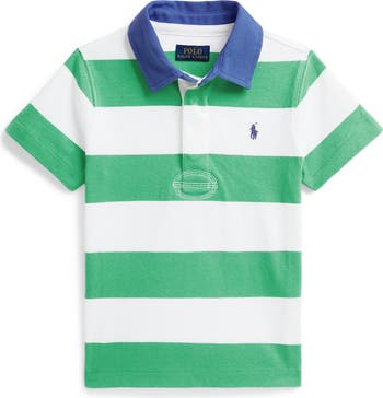 Rings of colorful rugby stripes brighten a polo made of heavyweight cotton jersey with a kid-size fit and a straight hem that works tucked or untucked. The iconic polo rider embroidered on the chest adds a prepster pop to any favorite look.