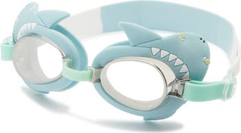 Toothy shark details play up the splash-ready style of comfy swim goggles made for underwater exploring.