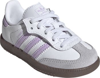 From the soccer pitch to your little one's first steps, this easy-on/stay-on sneaker maintains its vintage vibes with an extralow profile and serrated 3-Stripes angling up the sides. A padded collar and wide, grippy sole bring confidence and comfort to your young player's early game.