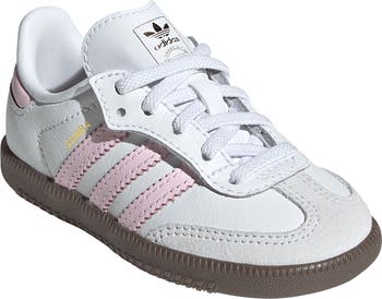 From the pitch to the playgrounds, this pint-size soccer sneaker maintains its legacy with an extralow profile and serrated 3-Stripes angling up the sides. A cushy footbed and a wide platform of grippy gum rubber put comfort and confidence under every beginning step.