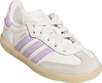 From the soccer pitch to your little one's first steps, this easy-on/stay-on sneaker maintains its vintage vibes with an extralow profile and serrated 3-Stripes angling up the sides. A padded collar and wide, grippy sole bring confidence and comfort to your young player's early game.
