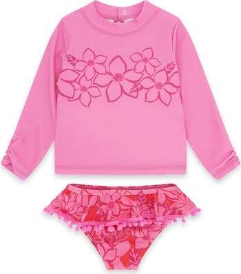 Your kids will love to splash and play in this sun-protected rashguard swimsuit that keeps them feeling breezy with its moisture-wicking abilities.