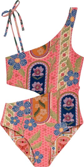 They'll love the breezy cutout along one side of this asymmetric one-piece swimsuit that's reversible, offering a second look in moments.