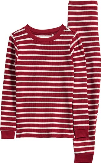 A soft, stretchy rib keeps them comfy in these sweetly striped PJs made from a cozy thermal knit.