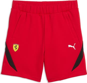 PUMA harnesses the energy of its Scuderia Ferrari racing team in these kid-size sweat shorts sporting a PUMA Cat and the team's iconic Prancing Horse logo on the legs. Let them rev up any favorite activity with a championship vibe that never puts on the brakes.