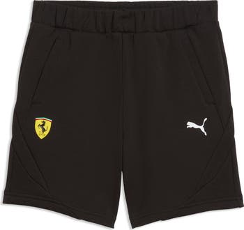 PUMA harnesses the energy of its Scuderia Ferrari racing team in these kid-size sweat shorts sporting a PUMA Cat and the team's iconic Prancing Horse logo on the legs. Let them rev up any favorite activity with a championship vibe that never puts on the brakes.