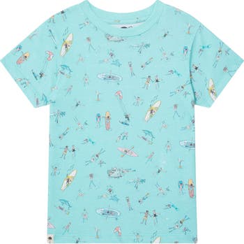 Everyone you need for a fun day in the ocean floats and splashes all over a seafoam-green T-shirt made for kids who like to soak up the sun in the comfort of soft, breathable cotton.