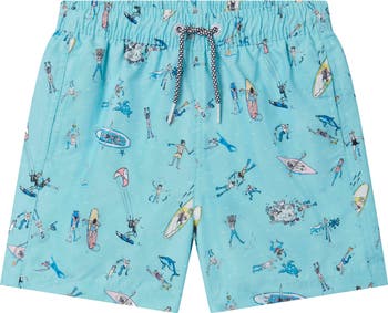 Your kiddo will make a splash when they dive into beach day wearing these swim trunks crafted from quick-drying fabric with an exclusive print.