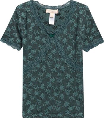 This lace-on-lace T-shirt brings garden vibes to every outfit change. Seamless construction keeps it smooth on skin and perfect for layering.