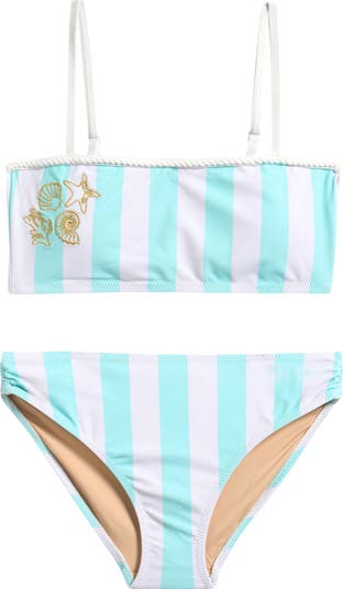 Gilded embroidery furthers the beach vibe of this striped two-piece that will have your junior trendsetter showing off their sense of style even as they swim.