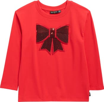 A sequined-covered bow shimmers brightly on a T-shirt made for kids who like to sparkle through the holidays and all year long in the comfort of soft, stretch-enhanced cotton. Perfect for present-filled get-togethers or just everyday fun, it makes an unforgettable addition to any child's wardrobe.