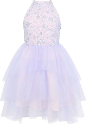 Your favorite partygoer will love to twist and twirl in this high-low party dress featuring an embellished bodice that catches the light and a tulle skirt that moves with each step they take.