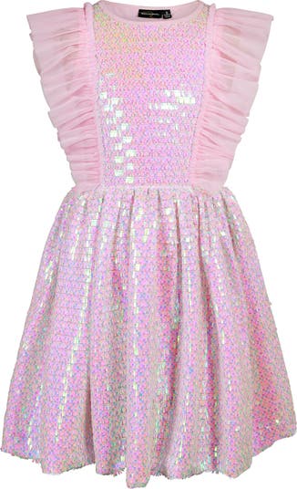 A supersoft stretch-cotton lining keeps them feeling comfortable as they embrace their inner social butterfly in this sequined party dress featuring fluttery tulle ruffles.