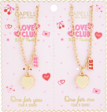 Your little one and their bestie will adore this set of necklaces adorned with hearts and BFF charms.