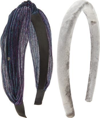 Cara Kids' Set of 2 Plissé & Velvet Headbands, Alternate, color, Grey Multi