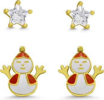 Your youngster will be ready to get in the holiday spirit with these playful and sparkling star and snowman earrings.