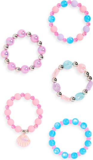 Let your fashion trendsetter shine with the mix-and-match fun of these five stretch bracelets that standout with their glossy beads and vibrant colors.