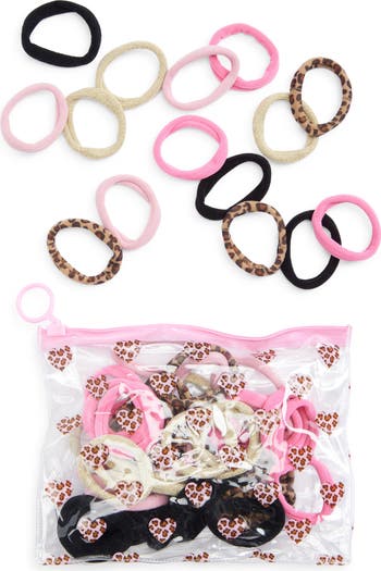 Your favorite kiddo will love to accessorize their look with these assorted ponytail holders that come in a clear pouch featuring playful hearts.