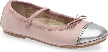 An elasticized mary jane strap offers a secure fit and retro charm on a kid-approved flat grounded by a grippy rubber sole for play-ready wear.