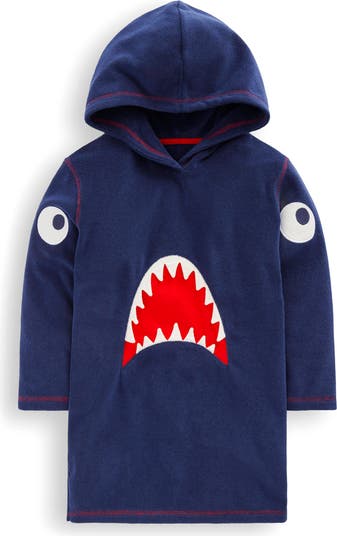 Cool 3D teeth project out from the maw of a hungry shark to bring whimsy to a hooded cover-up made from cotton-rich terry cloth to keep your child nice and comfy on the shore.