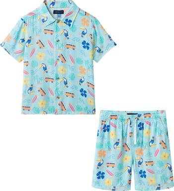 Your tiny trendsetter is ready for some fun in the sun in this lightweight, breathable set featuring a short-sleeved button-up and matching shorts.