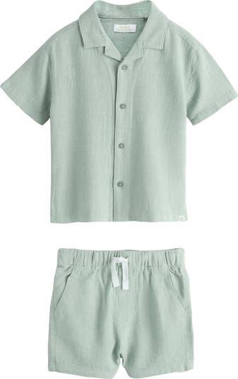Keep your little one cute and coordinated in this button-up shirt and shorts set made with a touch of linen.