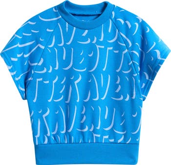A short-sleeve sweatshirt mostly made from soft cotton is just what your kiddo needs for the 'between' season.
