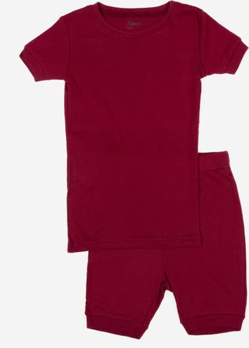 Leveret Kids Short Sleeve Cotton Solid Matching Family Pajamas, Alternate, color, Maroon