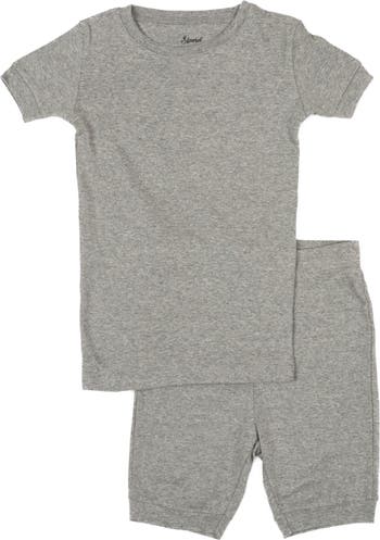 - Short-sleeve top with elastic-waist shorts and ribbed cuffs for comfort