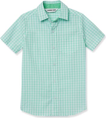 Lands' End Kids Short Sleeve Poplin Camp Shirt, Alternate, color, Mint Gingham